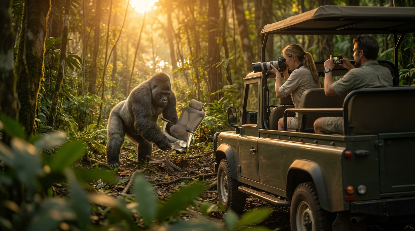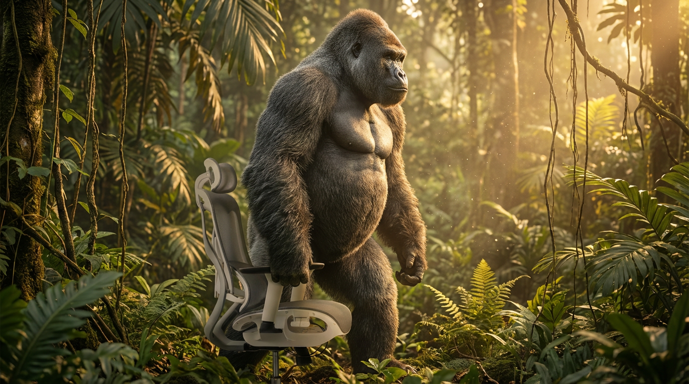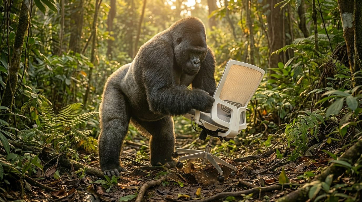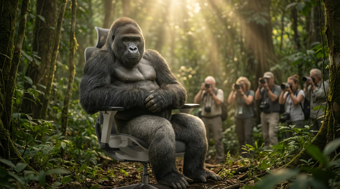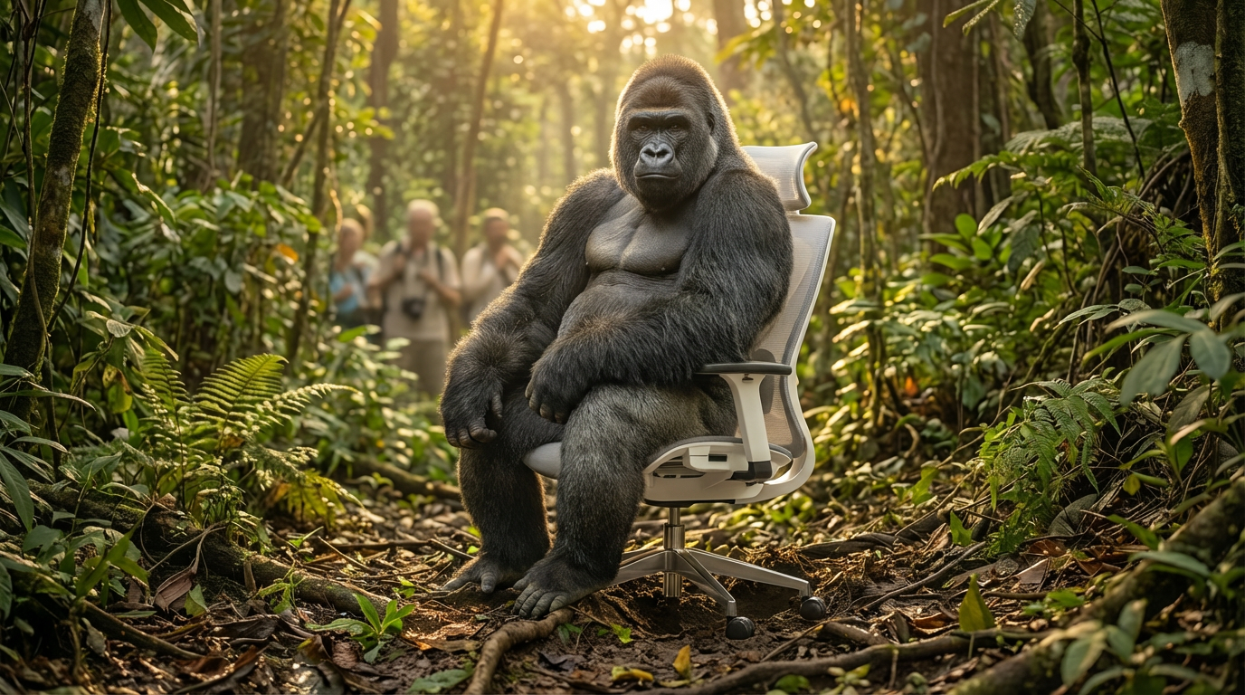An unpredictable environment. A silverback gorilla sits. The chair doesn’t wobble.