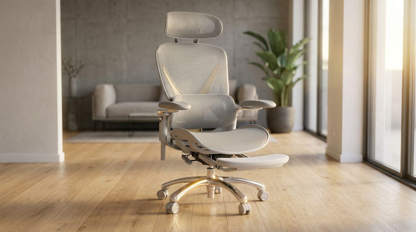 The idea uses contrast as its storytelling engine. A refined ergonomic chair placed in the most unforgiving setting imaginable. If it can handle the wild, it can handle the workday.